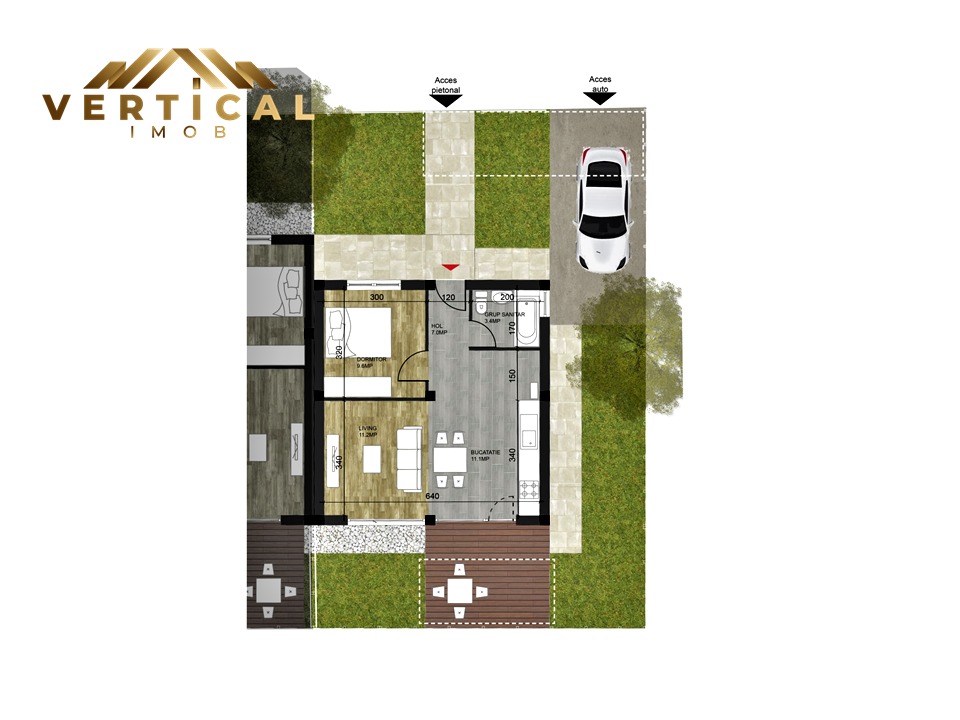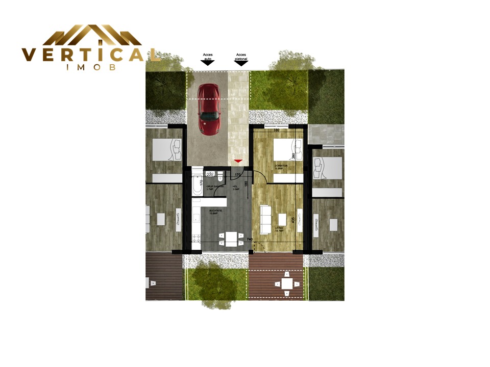 Suprafata terenurilor aferente fiecarui imobil este de cca 140mp – 200mp.